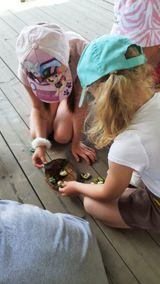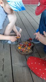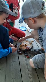 Настольная игра "Крестики - нолики" из камней, раскрашенных детьми.