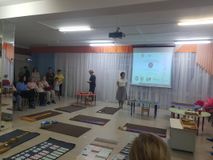 22 апреля, в рамках работы Базовой площадки, прошло открытое мероприятие для педагогов ПГО: Создание условий для развития двигательной активности детей раннего возраста. Образовательную деятельность с детьми раннего возраста на физкультурном занятии представила Резникова Вера Васильевна, инструктор по физической культуре. До трех лет ребенок активно познает возможности своего тела. Он учиться ходить, бегать, подниматься по лестнице, удерживать равновесие. Развитие крупной моторики помогает детям становиться увереннее и самостоятельнее. Вера Васильевна использовала в занятии игровые технологии, дыхательную гимнастику, показала работу с мячами и физкультурным оборудованием. Учитель-логопед, Акимова Валентина Владимировна, поделилась с коллегами своими наработками и показала логоритмические упражнения для обогащения двигательного опыта у детей раннего возраста. Педагоги высоко оценили опыт коллег и готовность использовать его в своей практике.