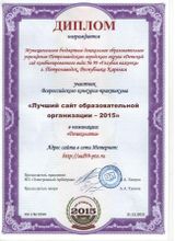 Наш детский сад принял участие во Всероссийском конкурсе-практикуме "Лучший сайт образовательной организации-2015" в номинации "Дошколята". За участие мы были награждены дипломом участника.