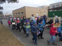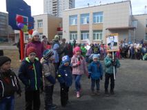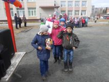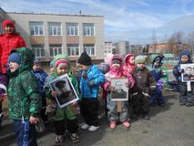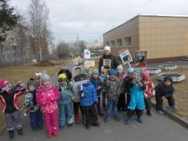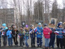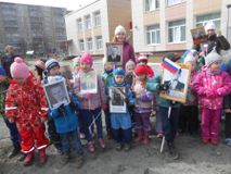 Сначала, ребята посмотрели фильм-презентацию о военных парадах мира и хронологию войны в фотографиях, а затем, колонной прошли в строю "Бессмертный полк", и пронесли фотографии своих родственников, участвовавших в ВОВ.